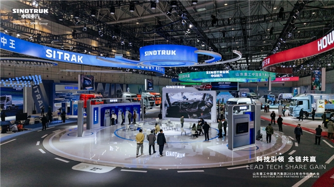 依托完备的产业链优势,中国重汽集团持续强化核心零部件自研能力。在电驱桥领域,公司已实现模块化技术构型并完成三代产品迭代,第三代集成式电驱桥在驱动效率与节能效果上实现双重突破,成为差异化竞争核心优势。同时,公司全面优化整机电控技术,确保产品在矿山、市政工程等复杂工作环境下的可靠性。2026年合作伙伴大会上,涵盖前电驱桥、自动驾驶系统等在内的近200件核心总成及前沿技术集中亮相,彰显其全链条研发生产实力。